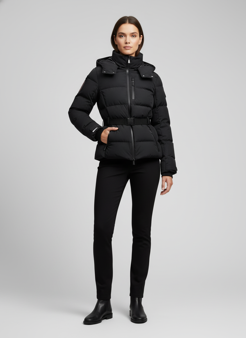 Warm, stylish and built for winter weather — this belted puffer jacket offers a flattering silhouette while keeping you protected from the cold. Designed with a high collar, detachable shoulder flaps and water-resistant outer, it blends practicality with modern style.